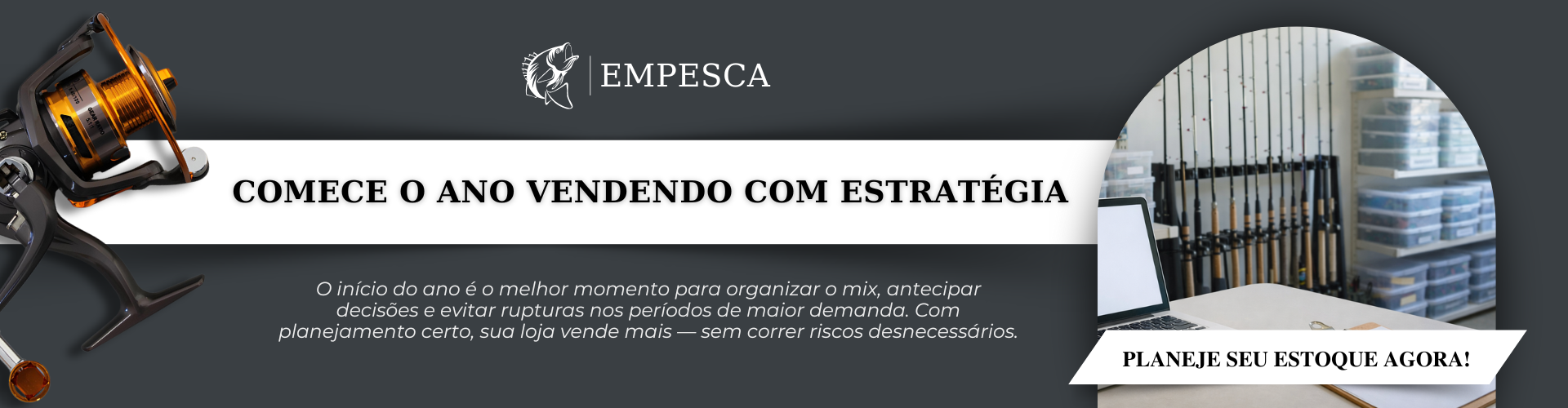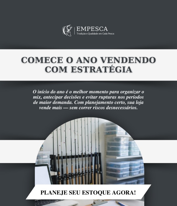 A piracema é a pausa ideal para você planejar seu estoque e sair na frente quando a pesca esportiva voltar com tudo em 2026. Prepare agora seu mix inteligente com os produtos de maior giro e aproveite a retomada com vantagem competitiva e margem saudável.
